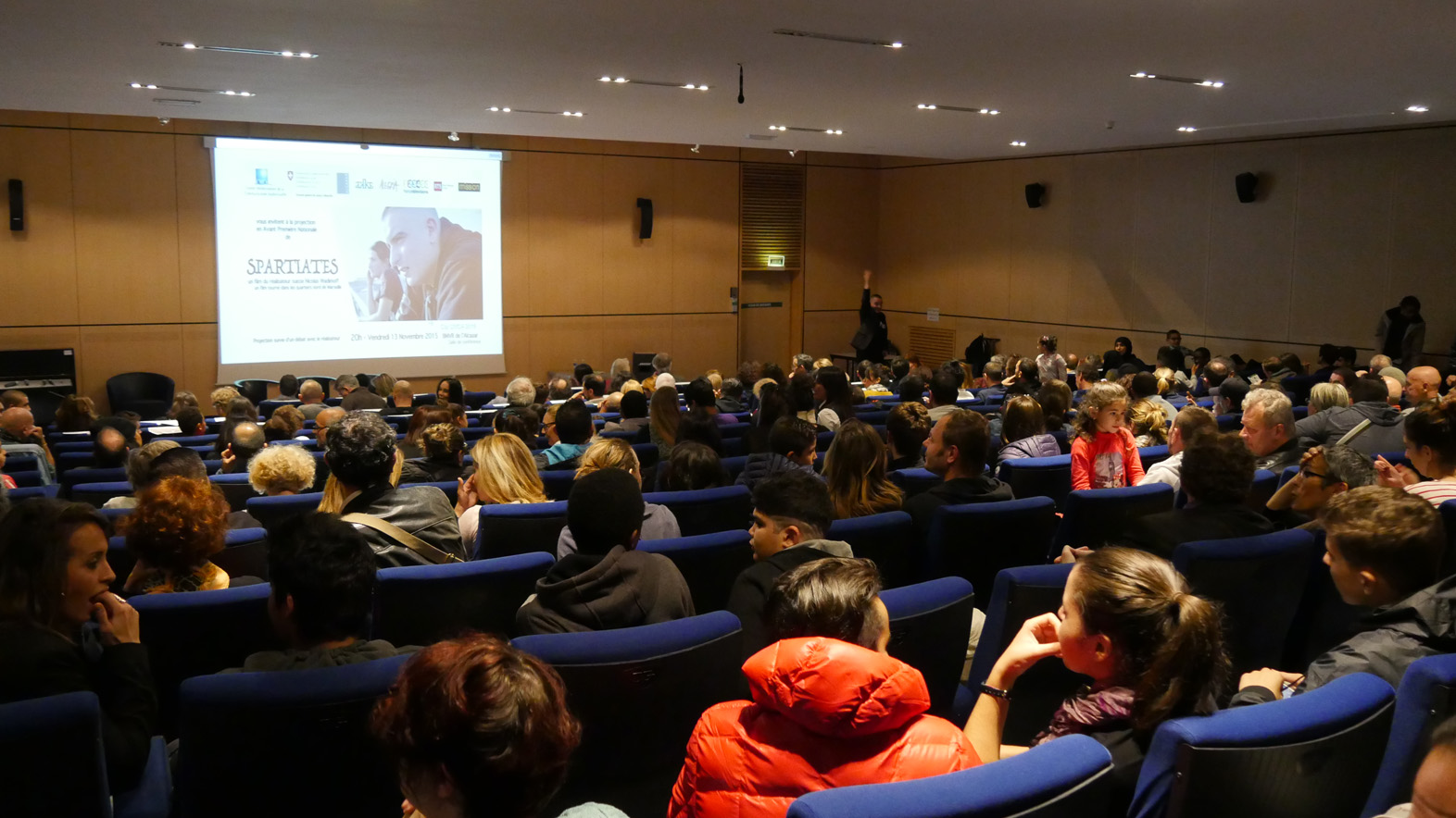 La Bibliothèque de L’Alcazar à la demande du CMCA a ouvert exceptionnellement ses portes à 20h pour accueillir un public très nombreux venu découvrir dans une salle comble, le documentaire du réalisateur suisse Nicolas Wadimoff tourné dans les quartiers nord de Marseille. Il nous montre le travail d’Yvan Sorel, courageux spartiate des temps modernes, auprès des enfants des quartiers nord. A travers l’apprentissage des arts martiaux il leur transmet les valeurs qui sont les siennes : travail, respect et tolérance.