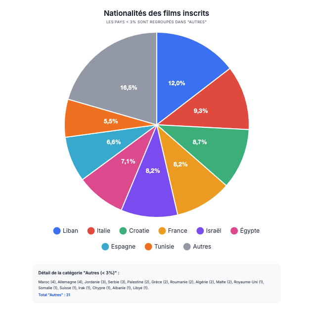 Les films reçus reflètent une grande diversité de regards et d’approches avec des récits ancrés dans des réalités contemporaines méditerranéennes, mêlant dimensions intimes et enjeux collectifs. Fiction, documentaire, animation et formats hybrides coexistent et témoignent d’une créativité en constante évolution.
