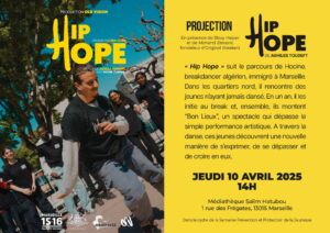 « Hip Hope » suit le parcours de Hocine, breakdancer algérien, immigré à Marseille. Dans les quartiers nord, il rencontre des jeunes n’ayant jamais dansé. En un an, il es initie au break et, ensemble, ils montent « Bon Lieux », un spectacle qui dépasse la simple performance artistique. A travers la danse, ces jeunes découvrent une nouvelle manière de s’exprimer, de se dépasser et de croire en eux.