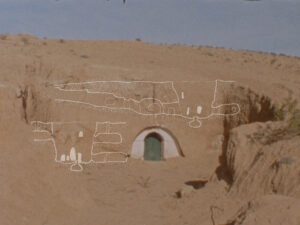 Images de Tunisie récupère et recontextualise des images d’archives des actualités des années 1940 produites par Les Actualités Françaises, et les combine avec de nouvelles images filmées sur les mêmes sites d’architecture vernaculaire dans les villages berbères du sud tunisien, notamment Matmata, Douiret et Tameghza.